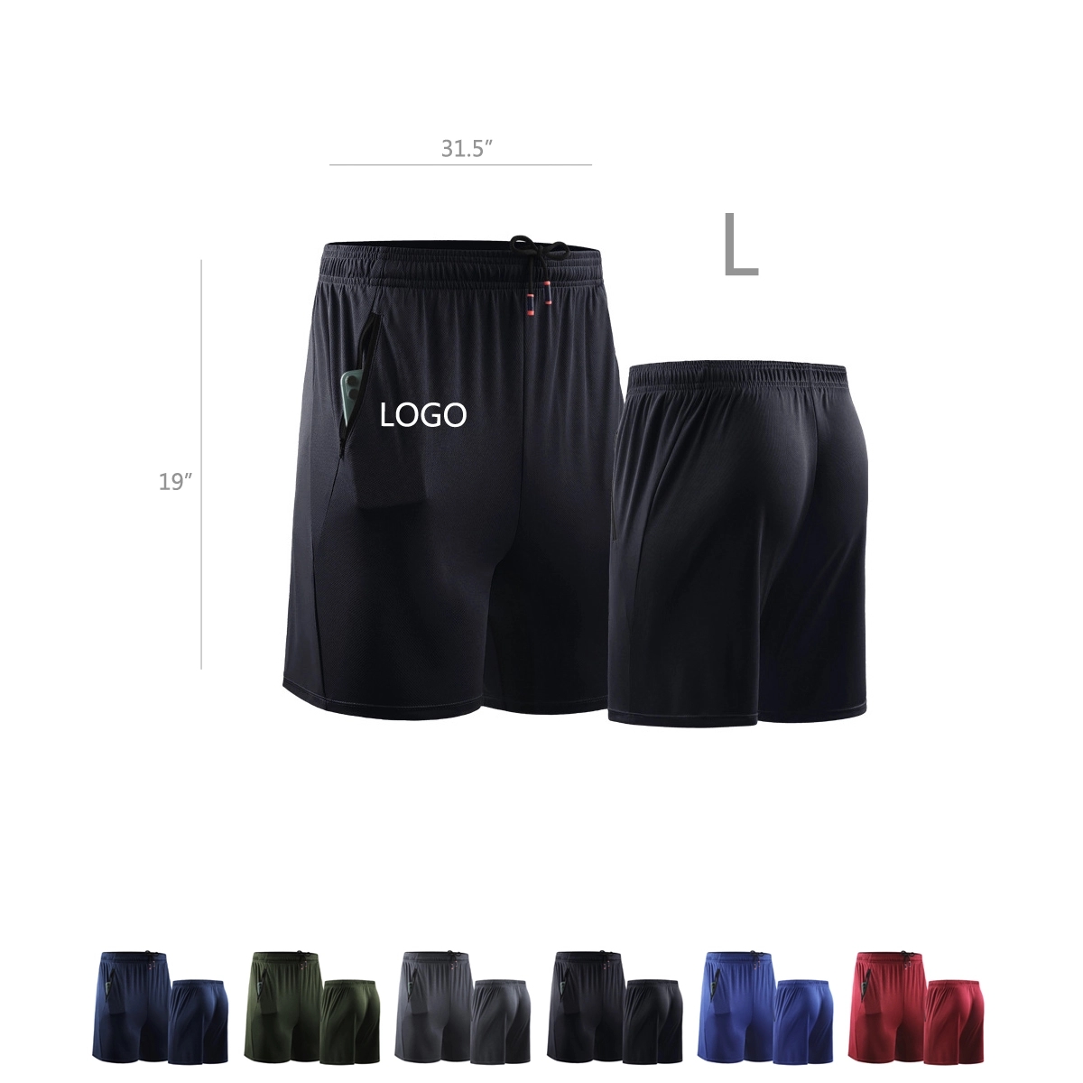 This Men's workout running shorts is made of 100% polyester,lightweight and breathable. Dry Fit, mesh fabric wicks away moisture and dries quickly, keeps your private part cool and airy all day.Wide Waistband and adjustable drawstrings fit loose but not baggy.Two deep zip pockets can hold even phone12 pro steadily, you don't need to worry about your belongs fall out while exercising.Perfect for lounging around and any sports (Running, basketball, football, badminton, squat, bodybuilding, Cross Fit, exercising, training, sports, fitness, athletics and workout). You can customized your logo.
